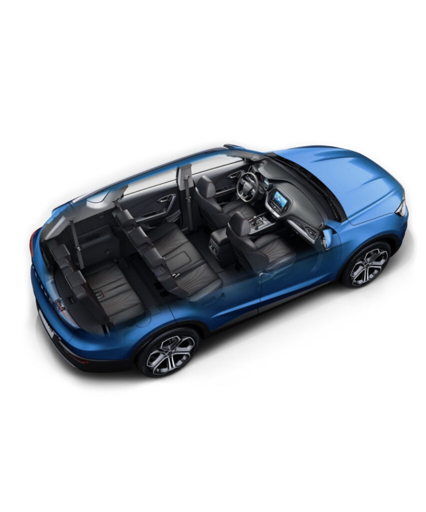 El Jetour X70 ofrece 7 asientos distribuidos en tres filas, con la tercera fila completamente rebatible, asegurando que vos y tu familia disfruten de cada viaje con total comodidad.